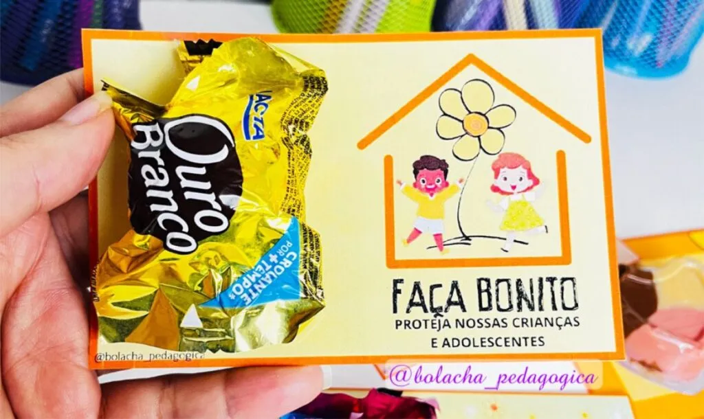 Após trabalhar o tema com as crianças ou pais, pode entregar um cartão com o bombom, para fixar sobre a data.