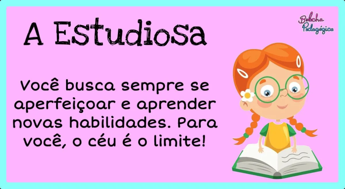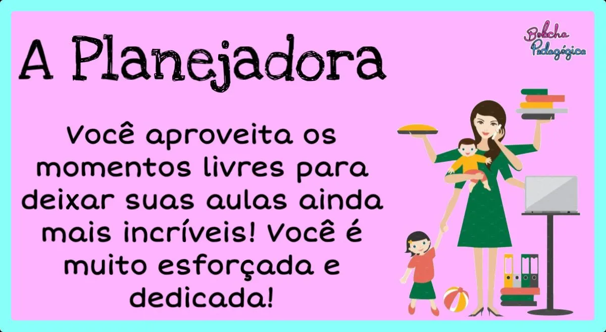 Você aproveita os momentos livres para deixar suas aulas ainda mais incríveis! Você é muito esforçada e dedicada!