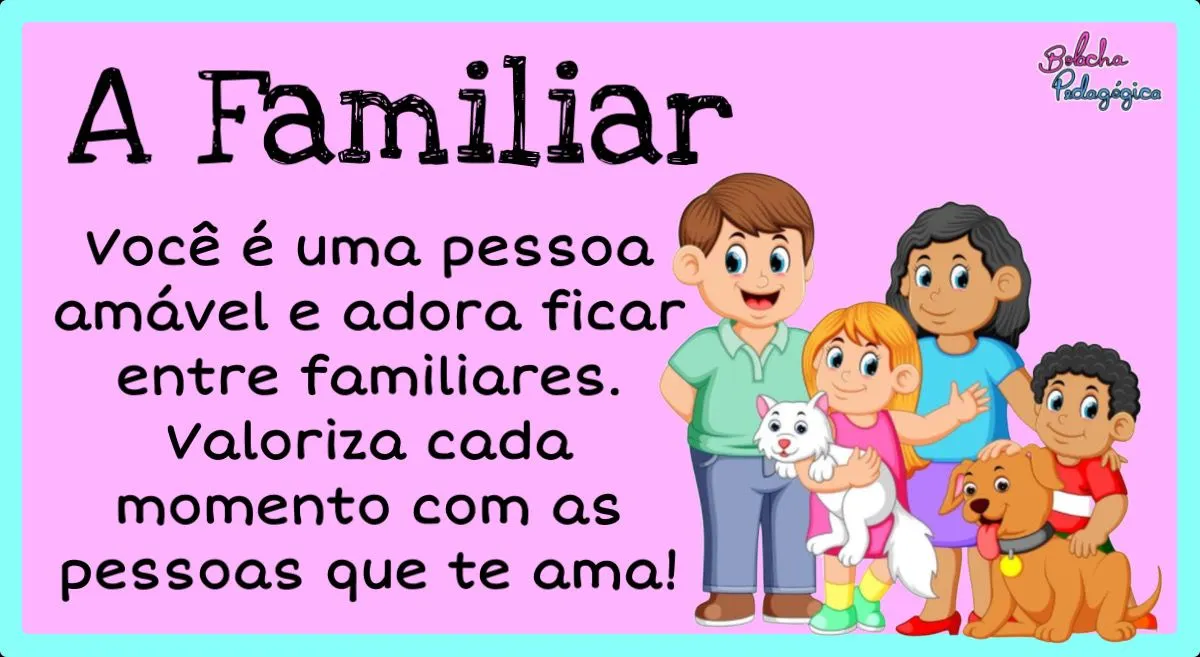 Você é uma pessoa amável e adora ficar entre familiares. Valoriza cada momento com as pessoas que te ama!