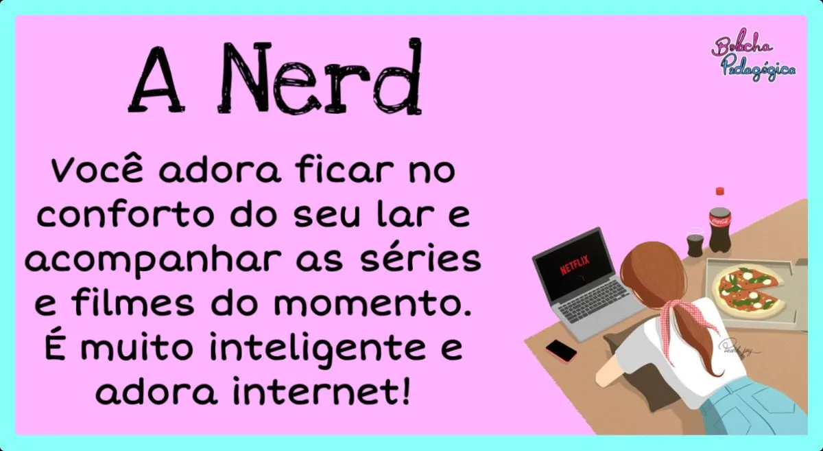 Você adora ficar no conforto do seu lar e acompanhar as séries e filmes do momento. É muito inteligente e adora internet!